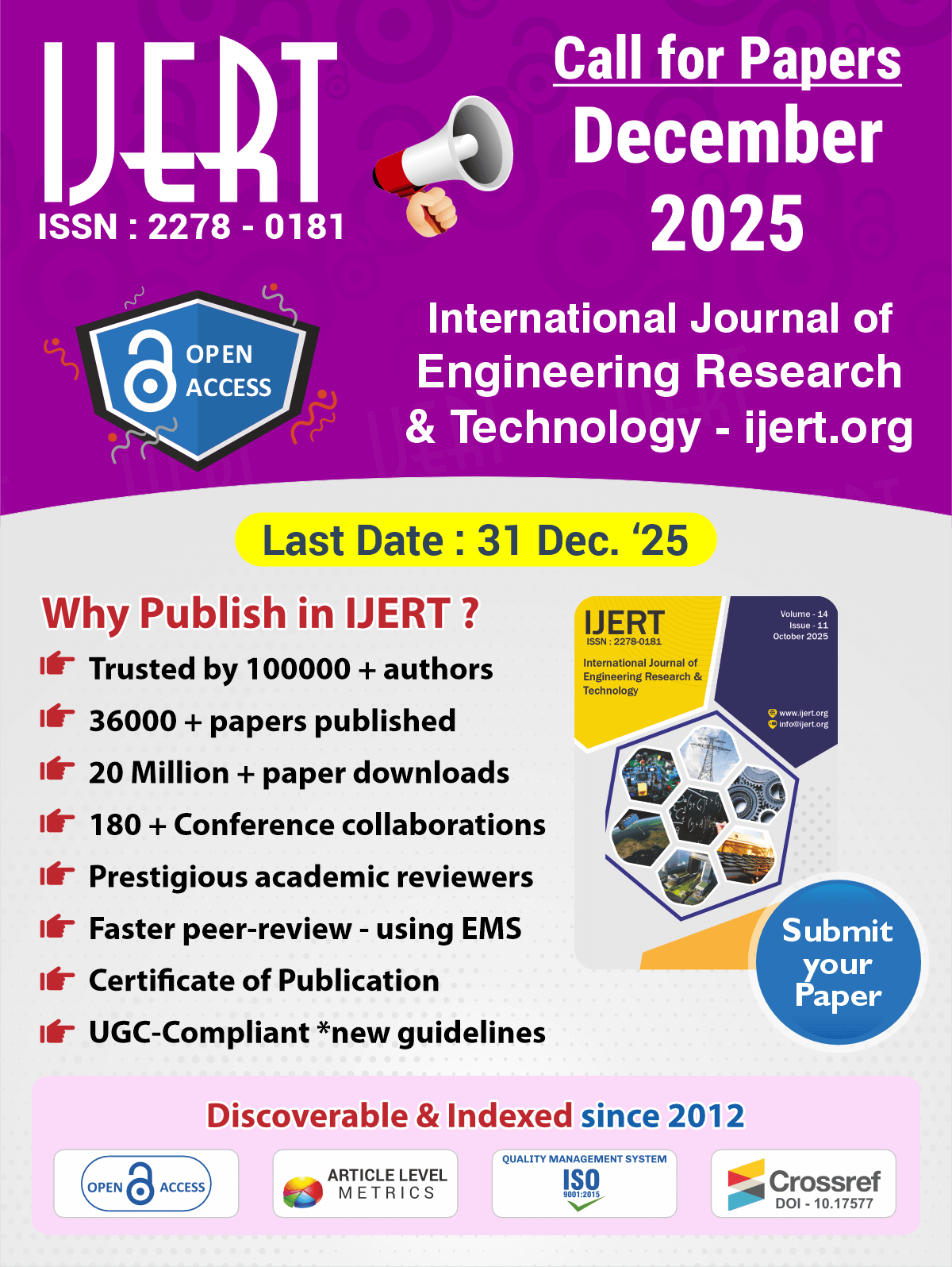 • IJERT is Indexed with Google Scholar, Research Gate, PubMed, Semantic Scholar, ISO 9001:2015 quality systems